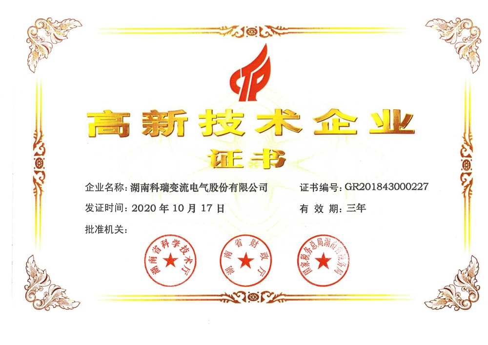 高新技术企业证书
